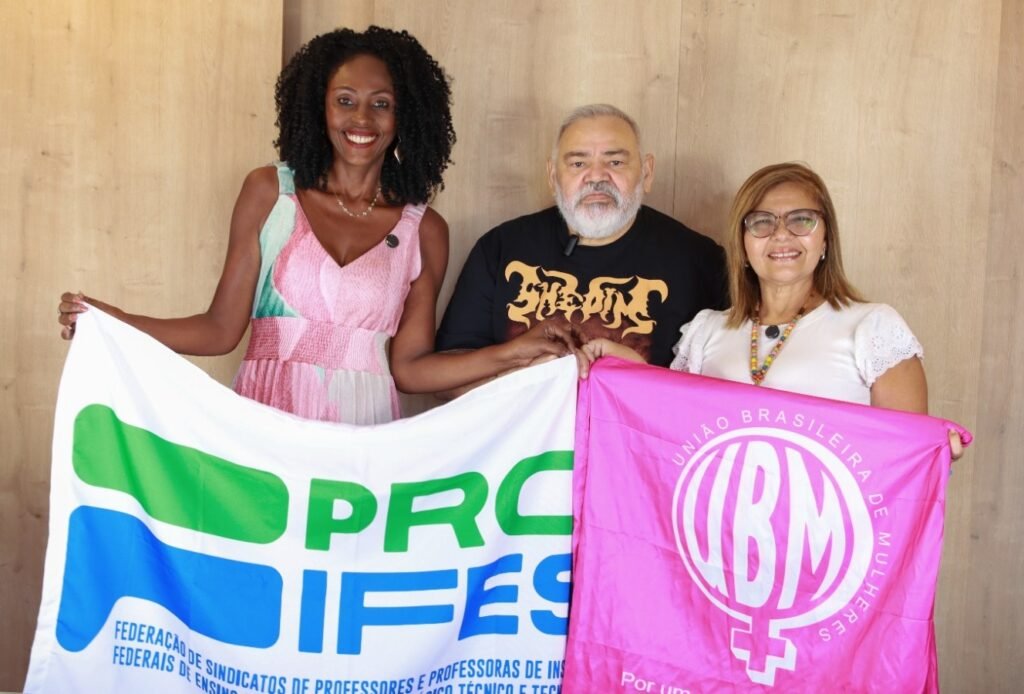O PROIFES-Federação recebeu a visita de Vanja Santos, presidenta nacional da União Brasileira de Mulheres (UMB), e Laudijane Domingos, secretária de organização da entidade que luta pelos direitos e a defesa das mulheres. Durante o encontro, foi entregue ao presidente do PROIFES, Wellington Duarte, a cópia de uma carta encaminhada pela UMB à presidência da Câmara dos Deputados, pela inclusão do PL 896/2023 na pauta de votações. De autoria da senadora Ana Paula Lobato (PSB/MA), a proposta criminaliza a misoginia, equiparando o ódio ou aversão às mulheres à Lei do Racismo (Lei 7.716/1989), com pena de de 2 a 5 anos de reclusão. O PL foi aprovado no Senado em março deste ano e poderá seguir para sanção presidencial, se passar também pela câmara, sem alterações no texto. Duarte garantiu apoio e ressaltou que o PROIFES-Federação atua de maneira firme e implacável em defesa das mulheres e das minorias, contra o racismo, a misoginia e a violência de gênero, temas que são debatidos nos diversos grupos de trabalho, com destaque para o GT de Direitos Humanos. O presidente citou, ainda, a recente assinatura da Portaria Interministerial nº2/2026 (dos ministérios da Educação e das Mulheres), que determina a inclusão de conteúdos relativos ao combate à violência contra meninas e mulheres no currículo escolar das instituições públicas de educação superior e na Rede Federal de Educação Profissional, Científica e Tecnológica, entre outras ações. Confira os principais pontos do PL 896/2023: