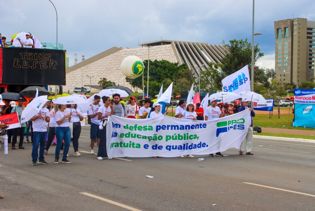 O PROIFES-Federação teve presença marcante e histórica na Marcha da Classe Trabalhadora, realizada nesta quarta-feira (15), na Esplanada dos Ministérios em Brasília. A manifestação, com milhares de pessoas e a participação das maiores centrais sindicais e entidades representativas dos trabalhadores nas mais diversas áreas de atuação, foi encabeçada pela CUT e a CNTE.